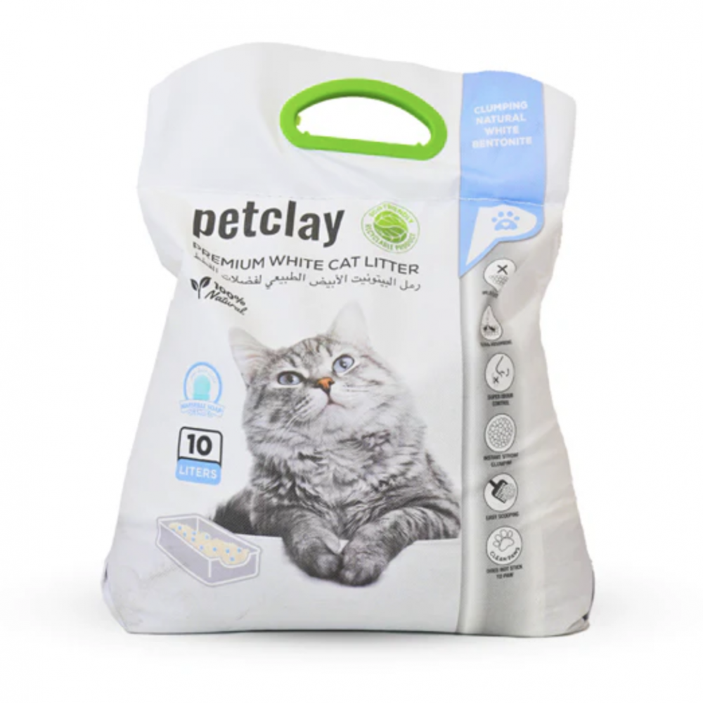 - رمل برائحه الصابون من بت كلاي للقطط مصنوع من طين البنتونيت الطبيعي بنسبة 100%، والذي يشكل كتلًا قوية ومضغوطة يسهل غرفها والتخلص منها.