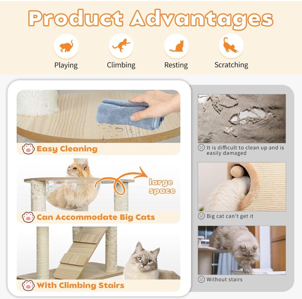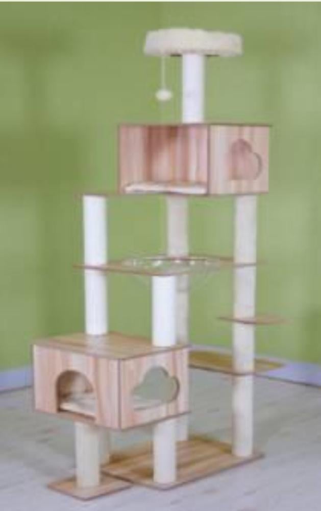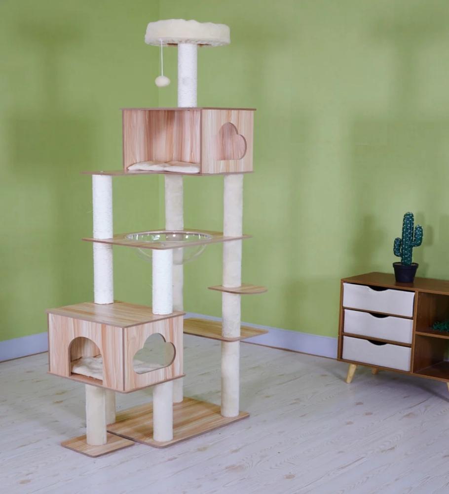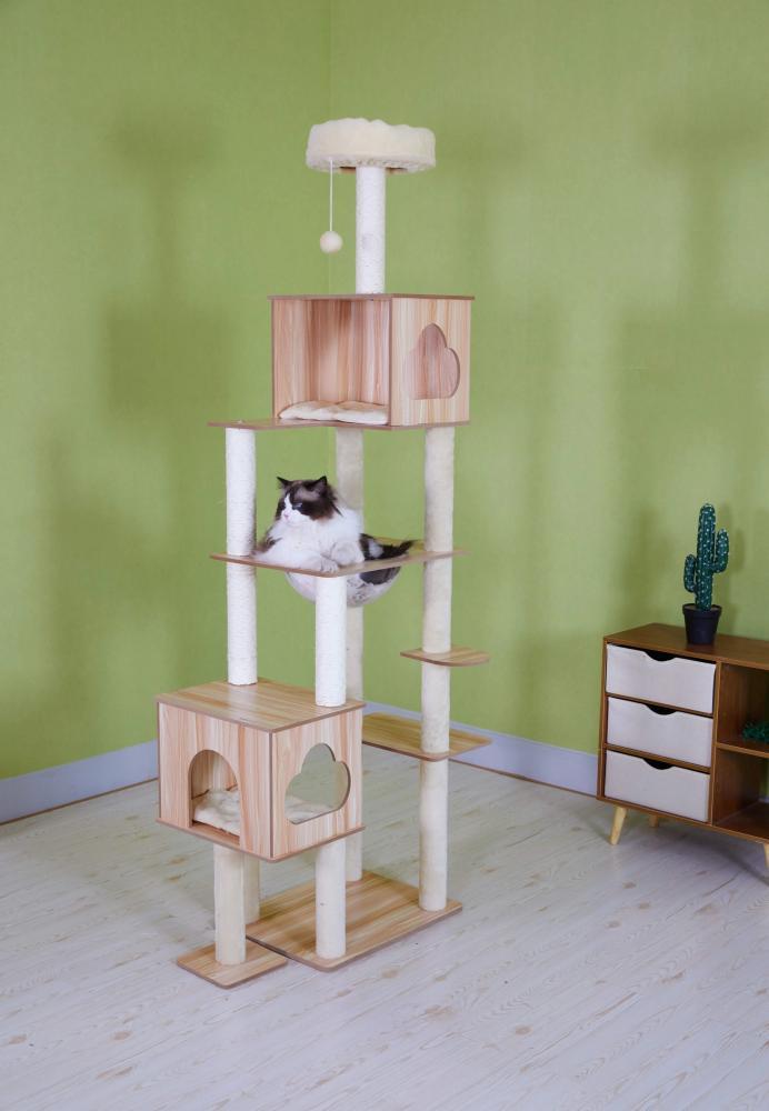 برج تسلق قطط مع خداشه و بيتين - خشب كبير