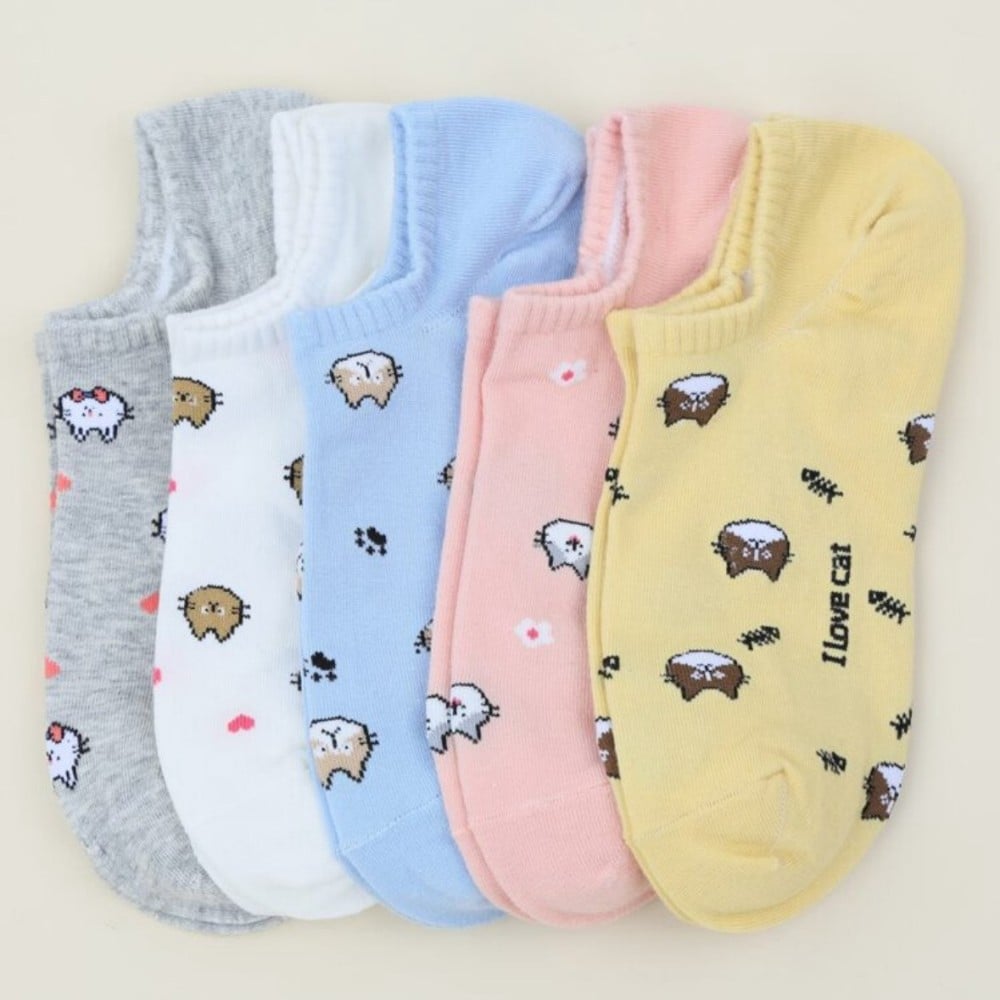 جوارب قصيرة شكل قطط- (مقاس 36-39)