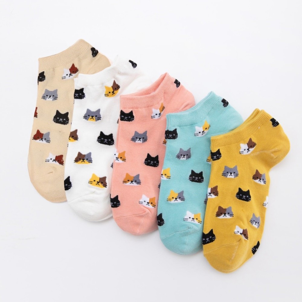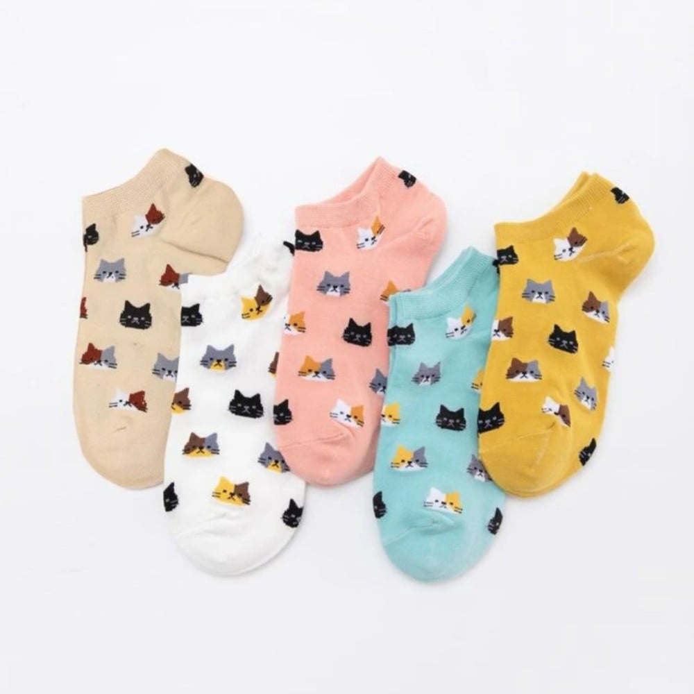 جوارب قصيرة طبعات قطط- (مقاس 36-39)