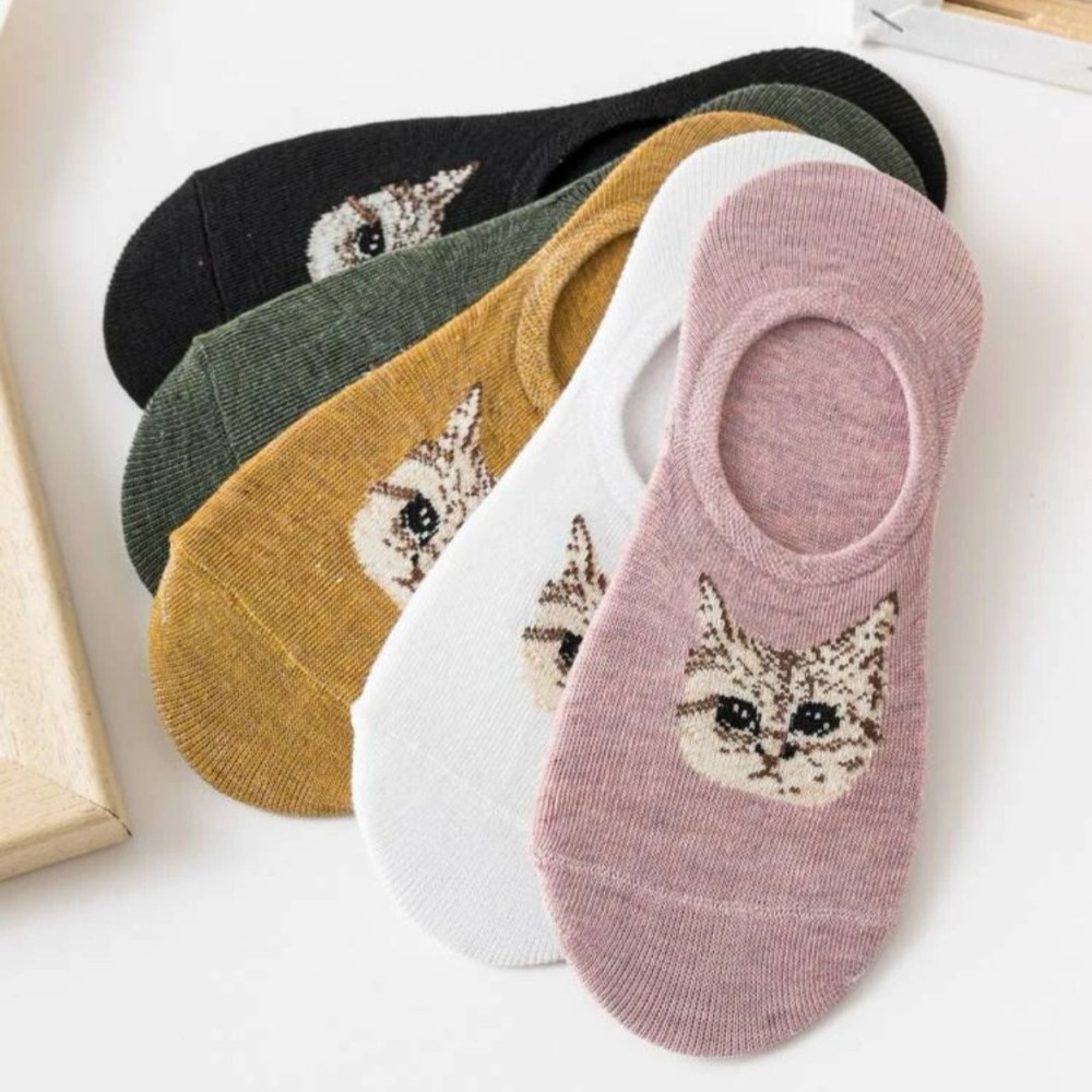 جوارب قصيرة طبعات قطط- (مقاس 36-39)