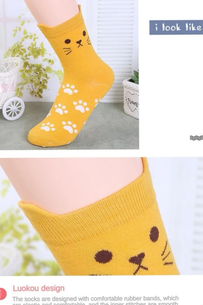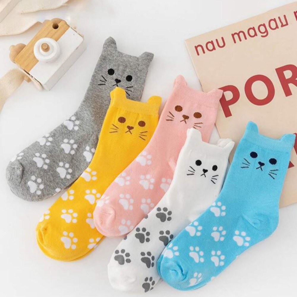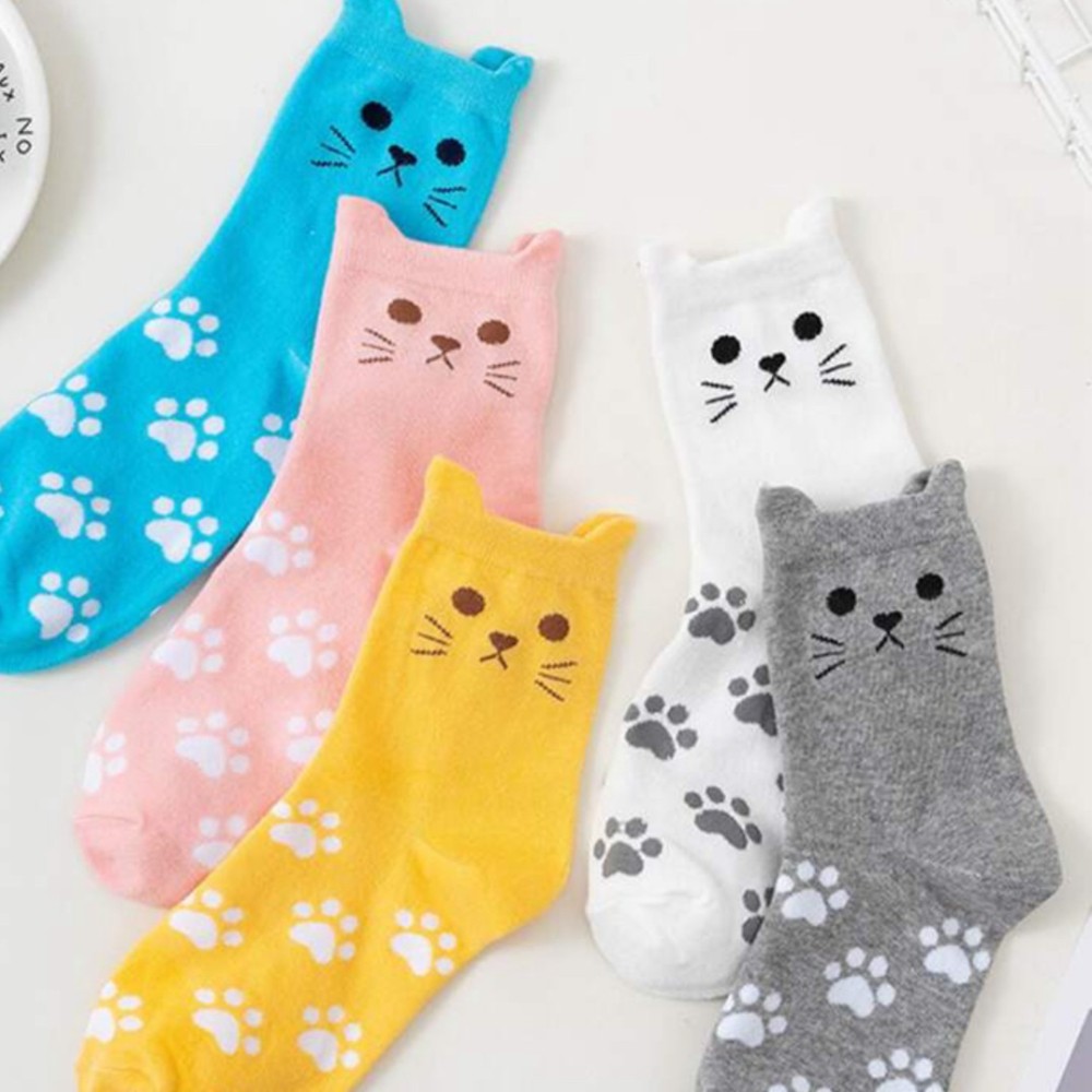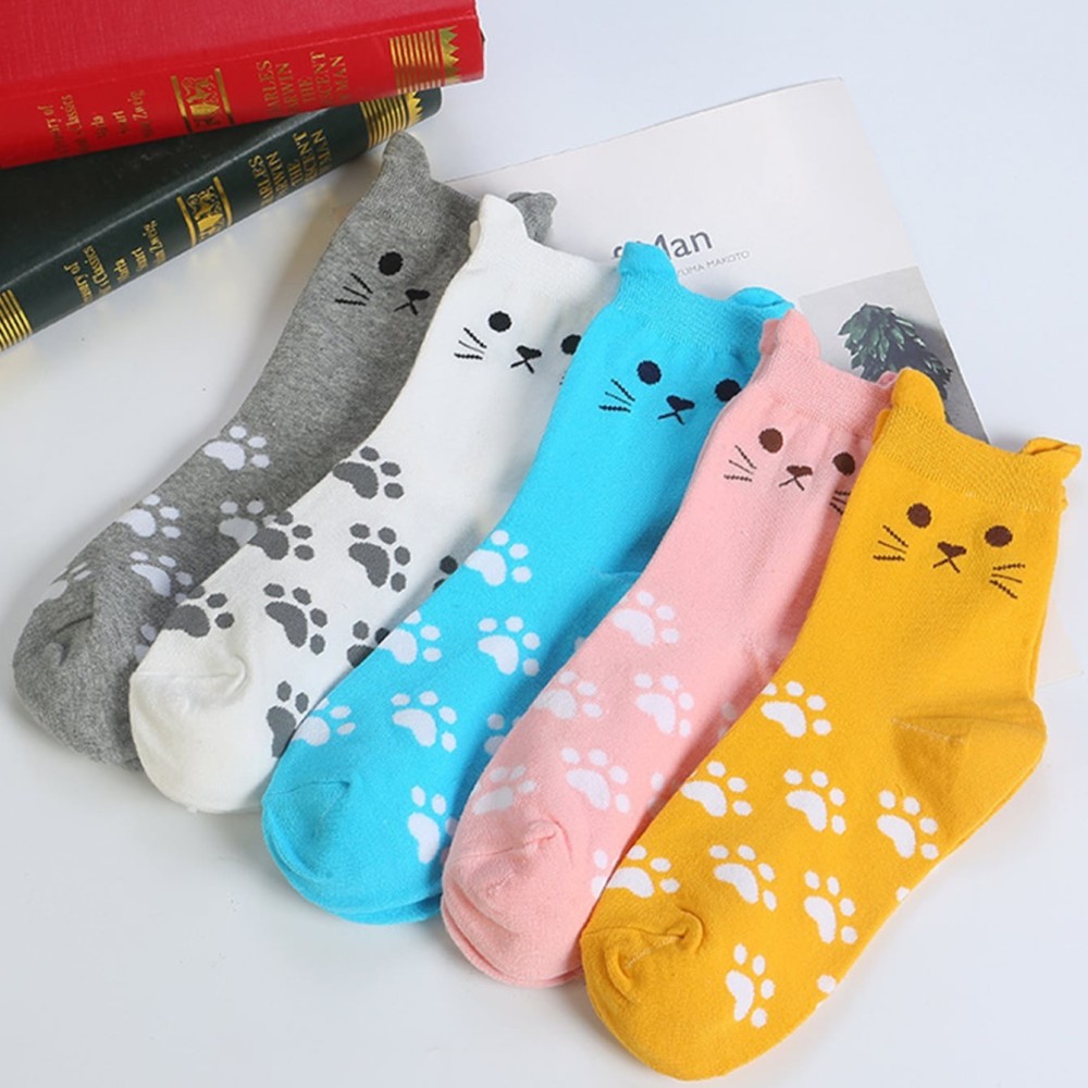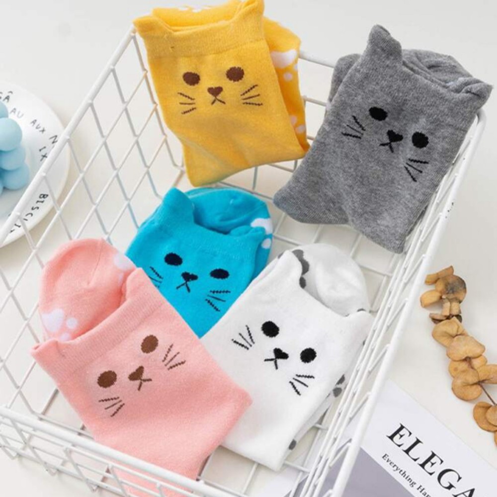 جوارب قصيرة طبعات قطط- (مقاس 36-39)