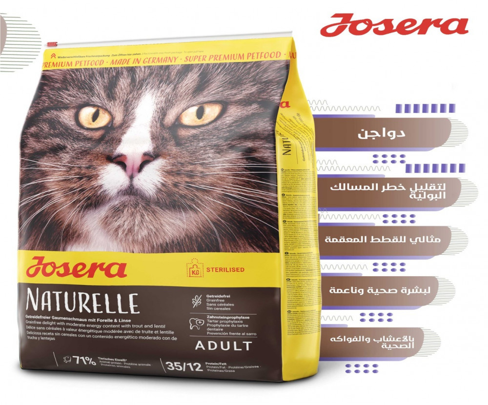 منتج طعام جاف للقطط . مخصص للقطط البالغة بلحم الدجاج مع العدس والسلمون ، منتج جوسيرا نايتشرال يوفر لقطك البروتين من مصدر طبيعي منوع بنسب متوازنة ، من لحم دجاج مختار بعناية من اجود أنواع قطع اللحم ، حصة إضافية يومية من الدواجن اللذيذة حسب ذوق قطتك المنزلية. تساهم الأحماض الدهنية والفيتامينات والعناصر النزرة القيمة في الحصول على بشرة صحية وفرو لامع . العدس والسلمون تكمل الوصفة ، فوائد غذائية متكاملة لدعم نمو صحي ومتكامل.