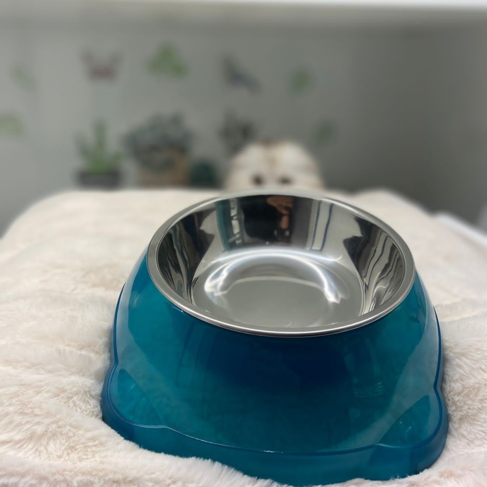 صحن اكل ستان ستيل بقاعدة بلاستيك للقطط و الكلاب