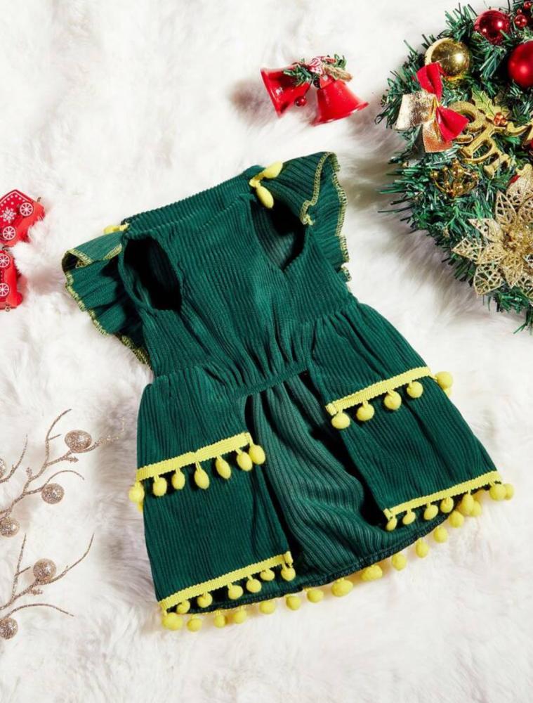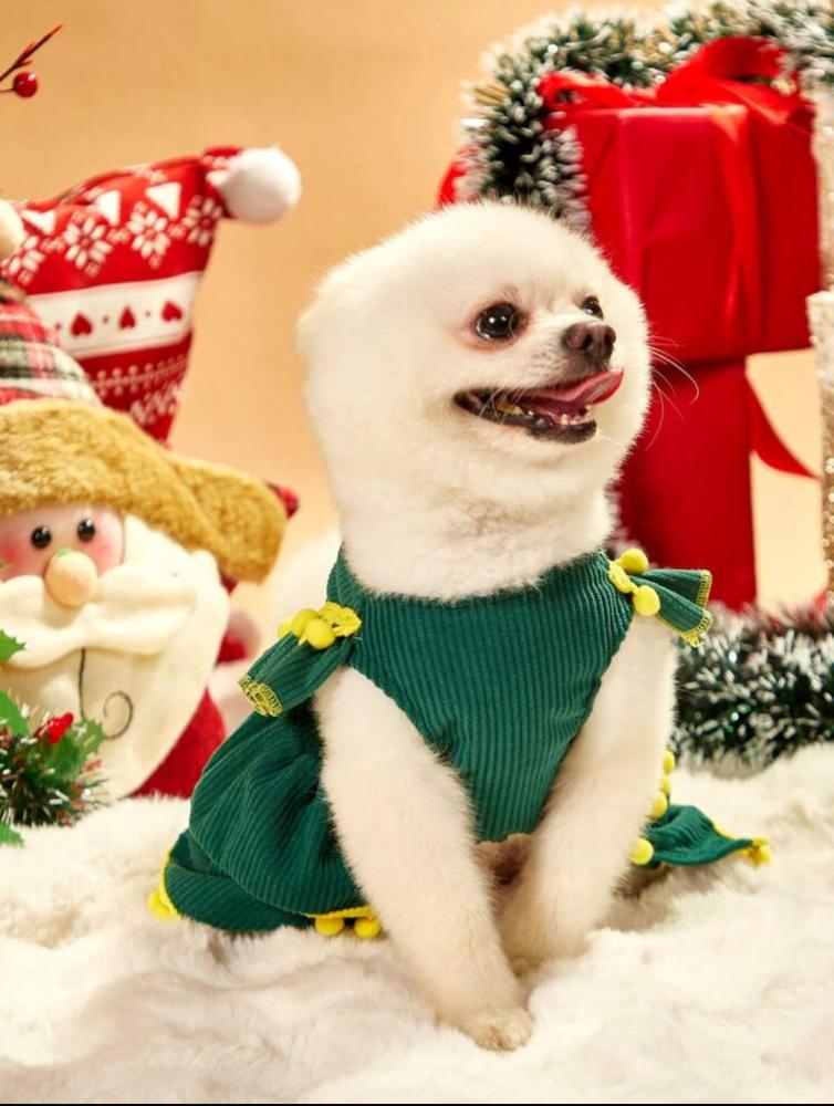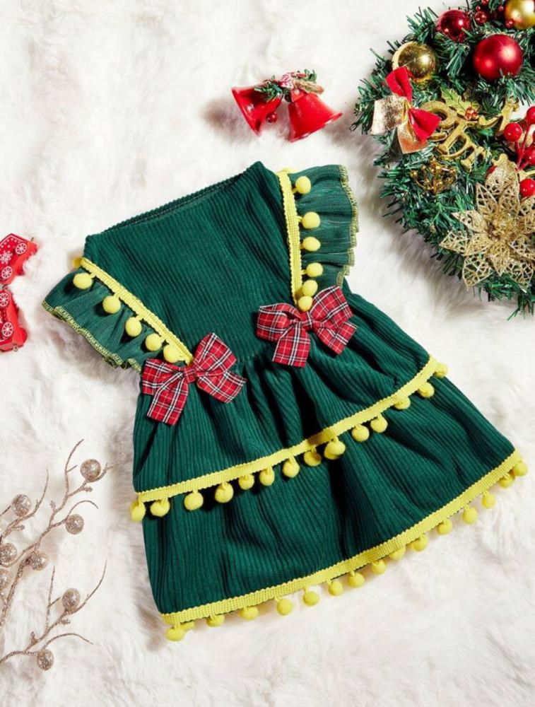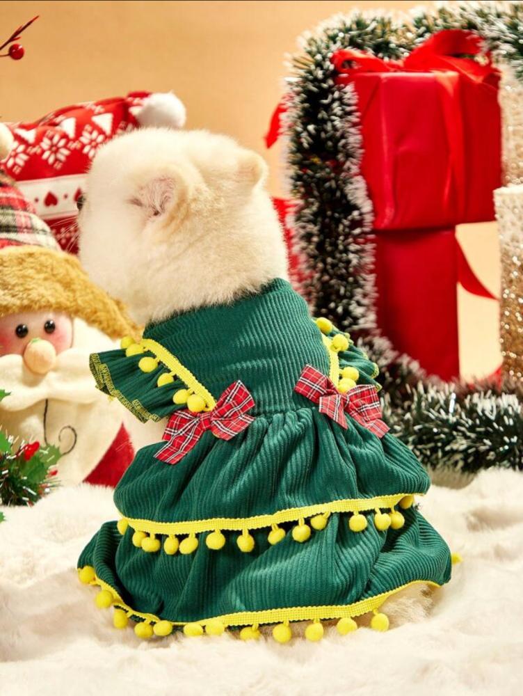 فستان اخضر مع فيونكة للقطط و الكلاب