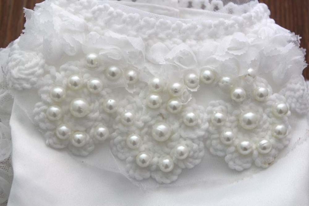 فستان زفاف ابيض مطرز و مرصع باللؤلؤ مقاس وسط للقطط و الكلاب