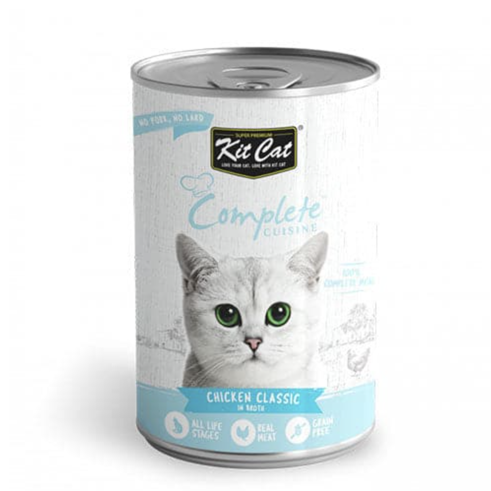 دجاج ، ماء ، مستخلصات سمكية ، زيت نباتي ، مكملات فيتامينات (كلوريد الكولين ، فيتامين A ، B 1 ، فيتامين B 2 ، نياسين ، حمض البانتوثينيك ، فيتامين B 6 ، البيوتين ، حمض الفوليك ، فيتامين B 12 ، D 3 ، Eـ) ، مكملات معدنية (كبريتات الكالسيوم ، الفوسفور ، البوتاسيوم ، الزنك ، الحديد ، النحاس ، المنغنيز ، اليود ، السيلينيوم) ، التورين