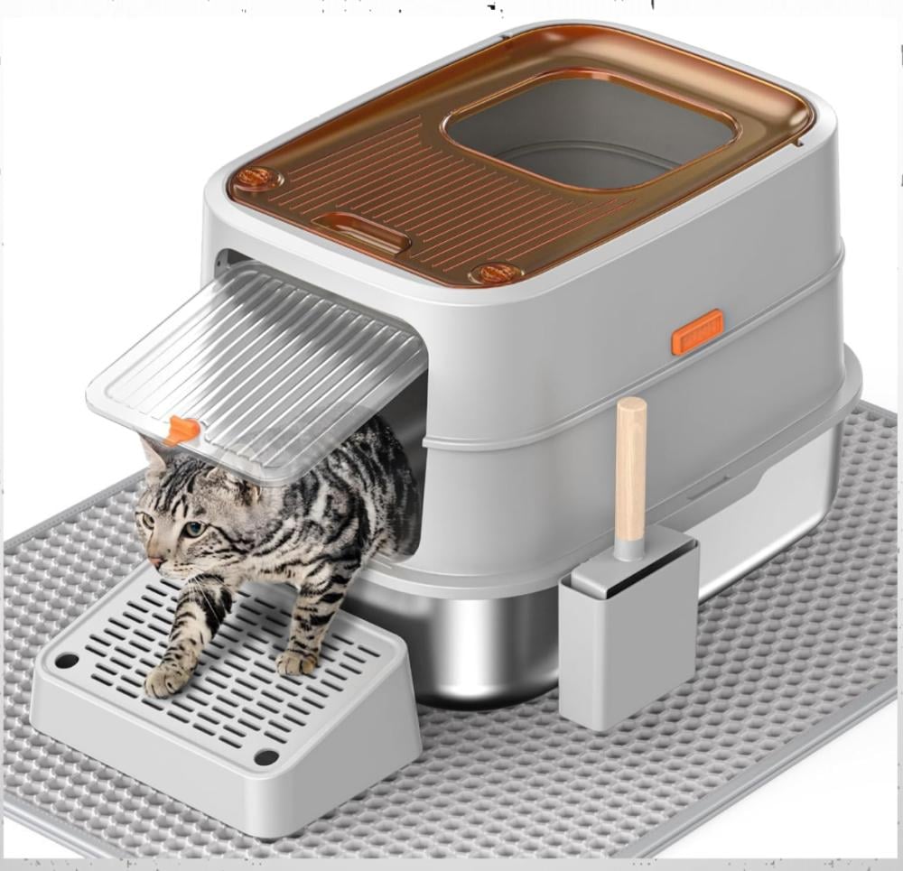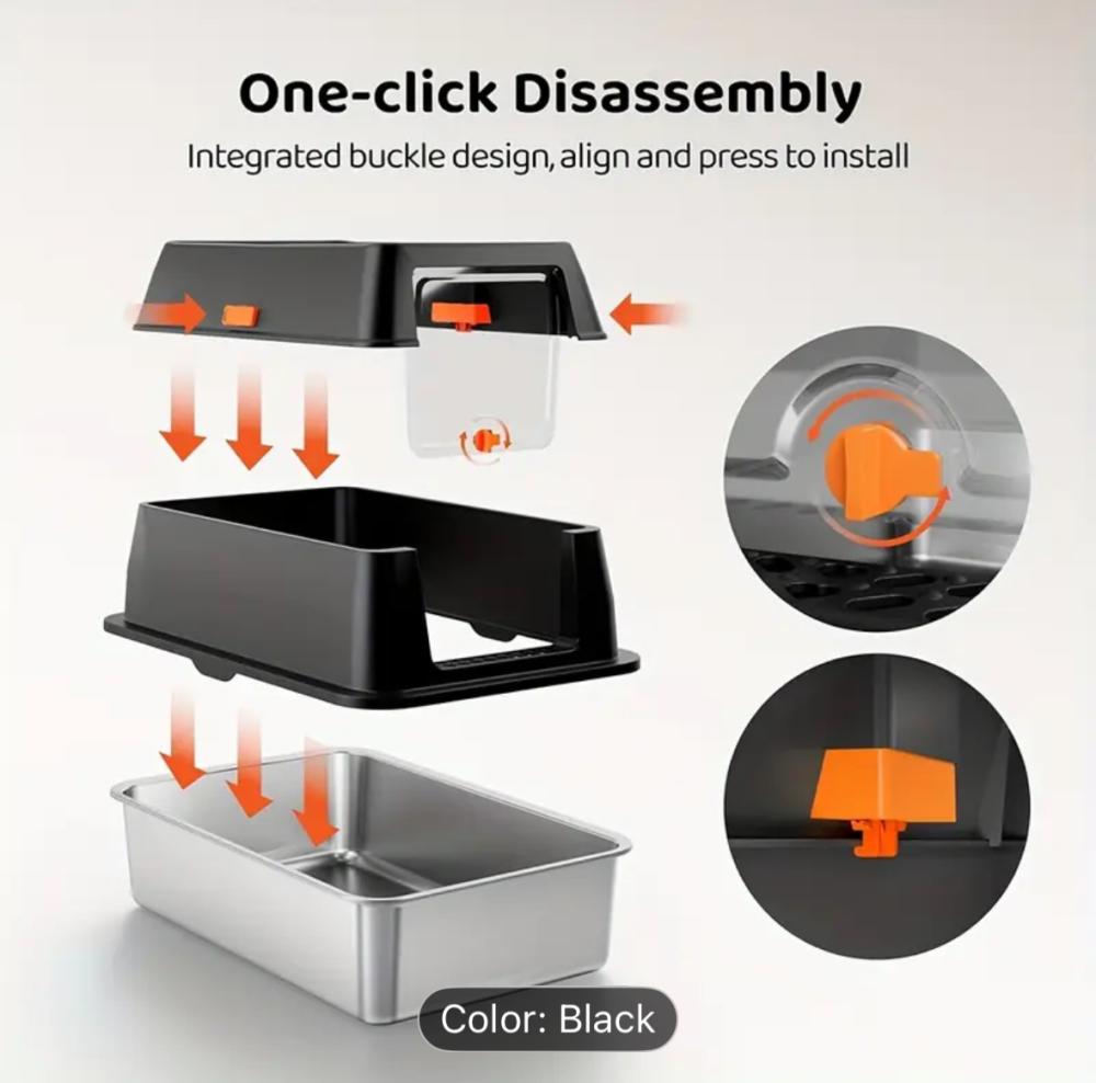 ليتر بوكس ستانلس ستيل مغلق عميق مع درج و مجرفة