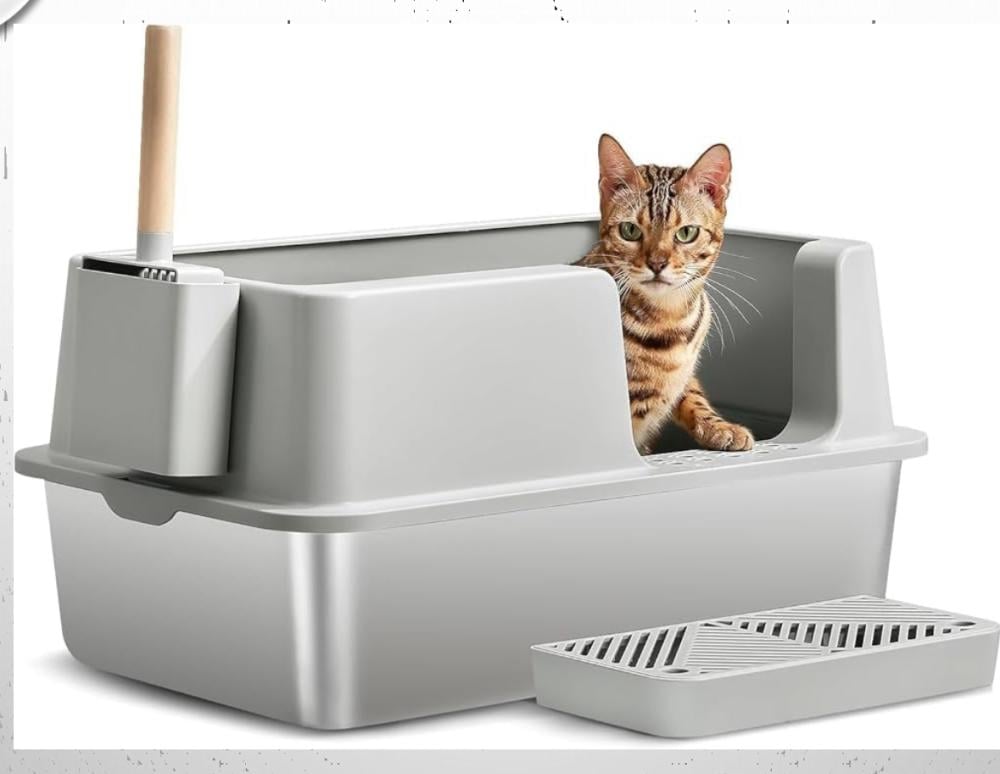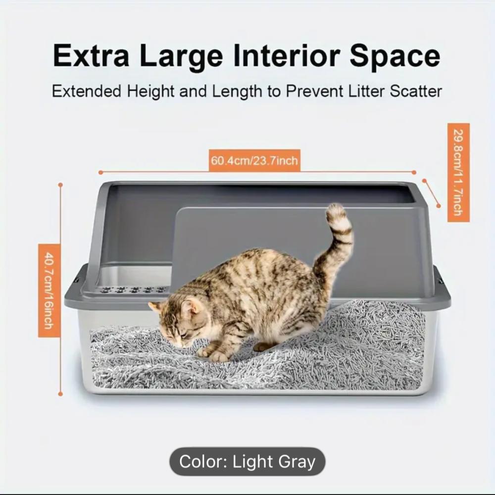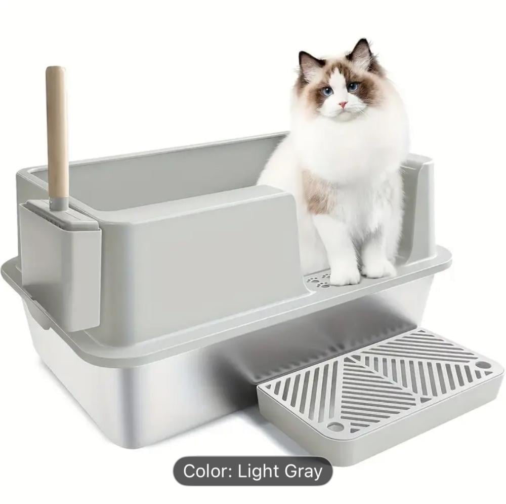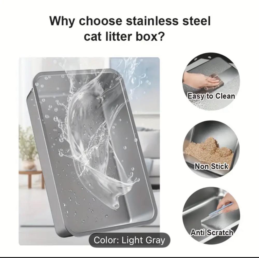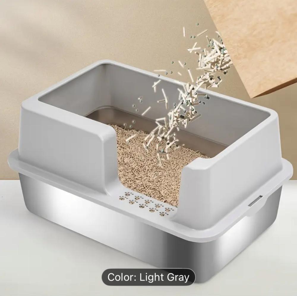 ليتر بوكس ستانلس ستيل مفتوح باطار رمادي مع درج و مجرفة