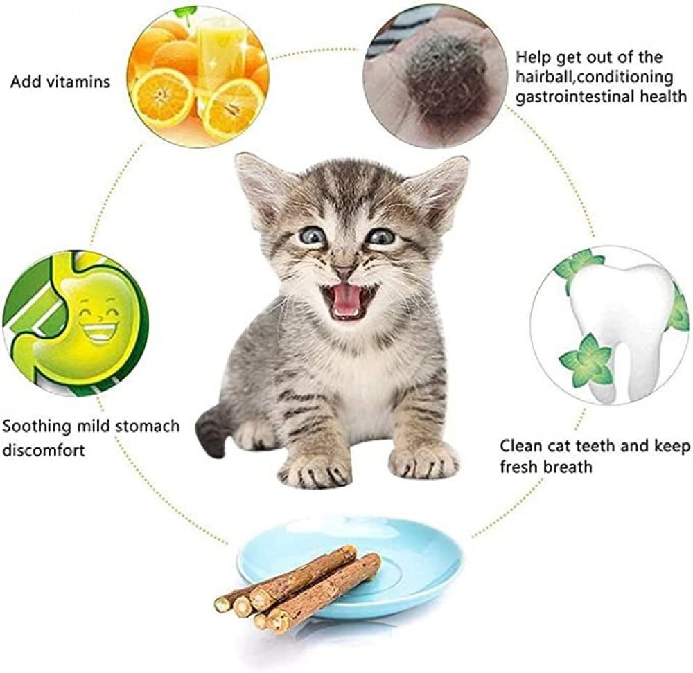اغصان المضغ هذه مناسبة لمعظم القطط ولكن تعتمد على طبيعة امتصاص أمعاء القطط المختلفة لها، لذلك يجب أن تتكيف عليها ببطء حسب معرفة الكمية المناسبة، ويوصى باستخدامها 2-3 مرات في الأسبوع للقطط البالغة وبكمية عصا واحدة في كل مرة.